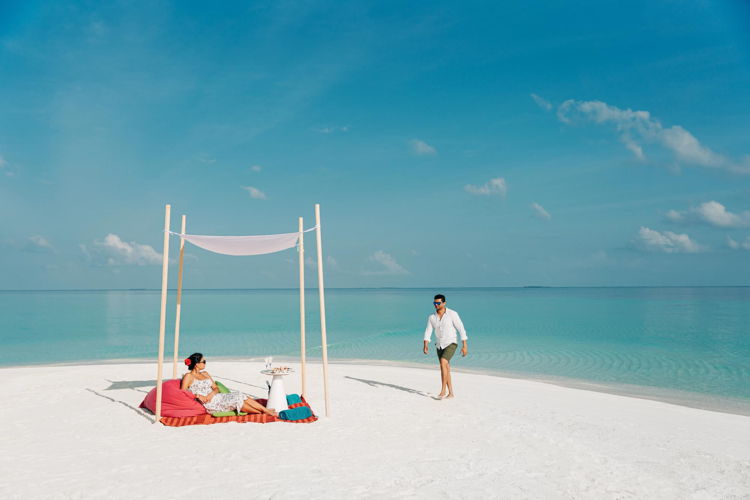 For those seeking a softer rhythm, whether alone, with a partner, or simply in search of quiet time to recharge and be present, a mid-day Private Finolhu Sandbank Escape offers a serene pause from the island’s energy: a white-sand retreat where time slows, waves whisper, and a bottle of chilled Prosecco with curated canapés sets the tone for an unhurried afternoon.